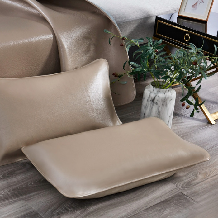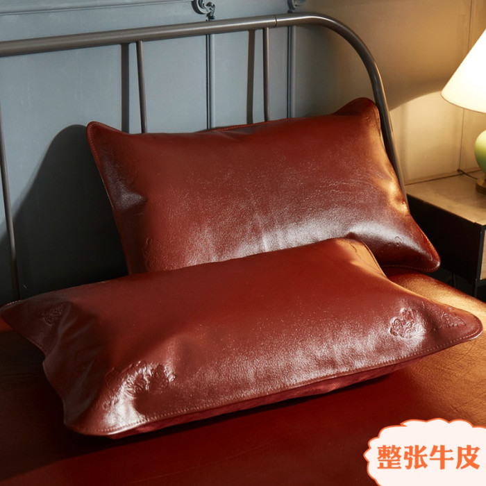 牛皮枕套夏季涼蓆枕蓆單人頭層水牛皮海甯真皮一對軟枕片枕頭整張