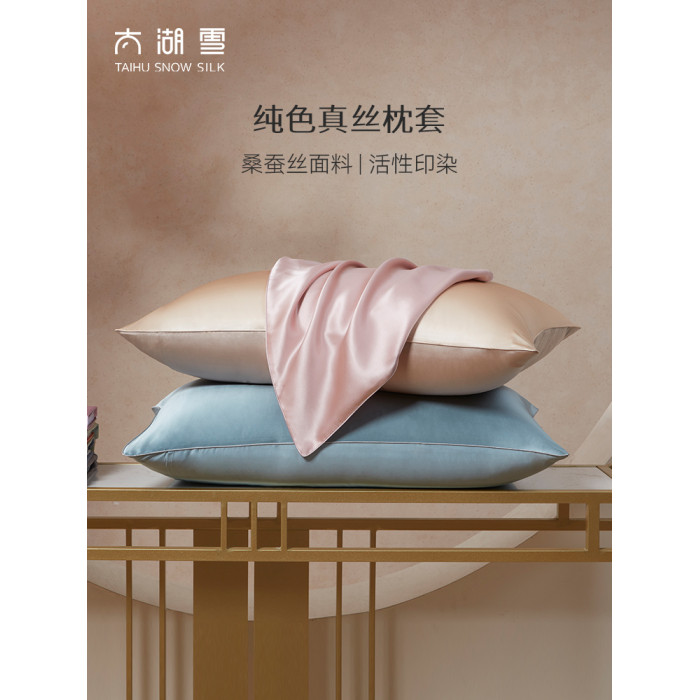 太湖雪真絲枕套單面純色經典簡約絲滑桑蠶絲枕頭套單人