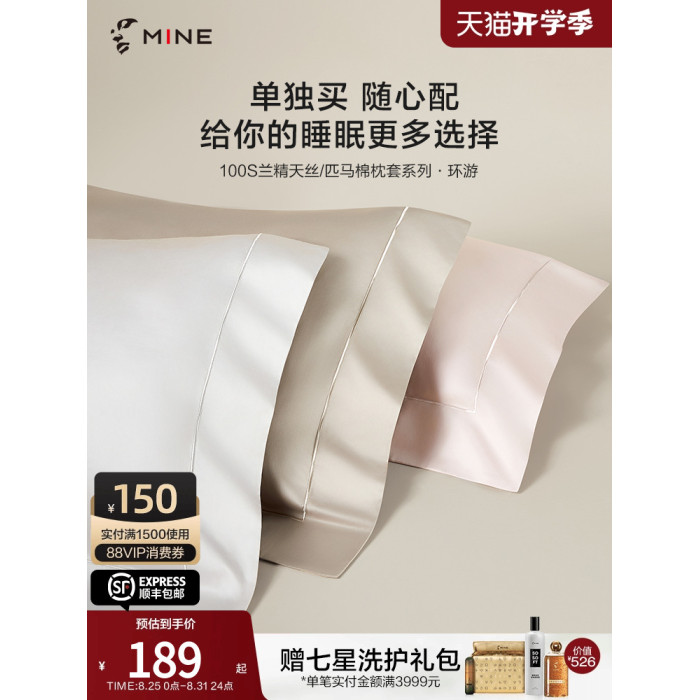 MINECASA/寐100支匹馬棉短枕套四季通用親膚枕頭套純色純棉環遊