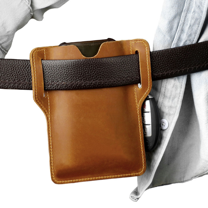 新款瘋馬皮雙手機包腰掛戶外運動工地運動復古男士腰包