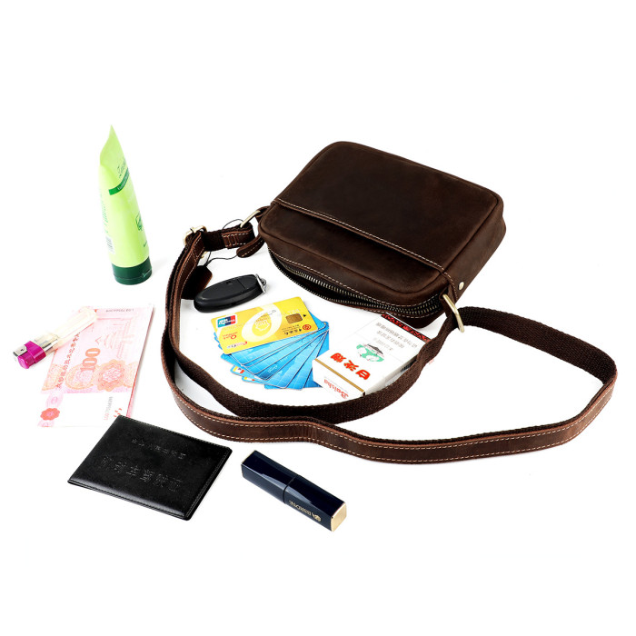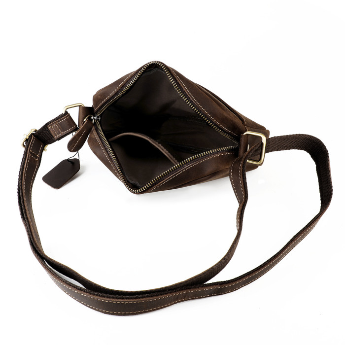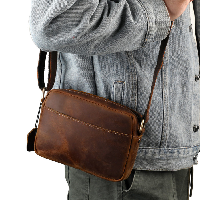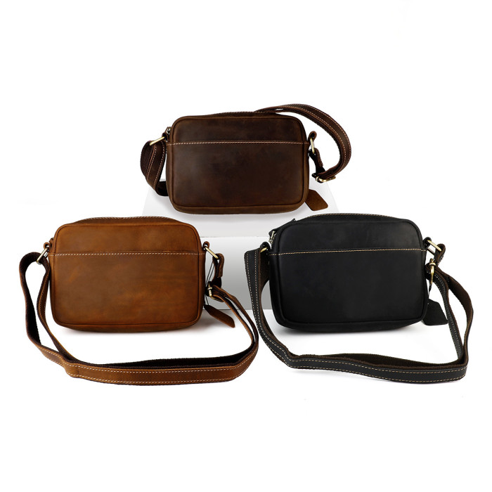 新款瘋馬皮男女士單肩包 復古休閒斜後背包單肩斜後背包真皮男包