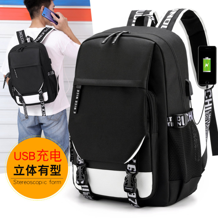 2021新款牛津布雙肩包USB充電後背包戶外旅行學生書包
