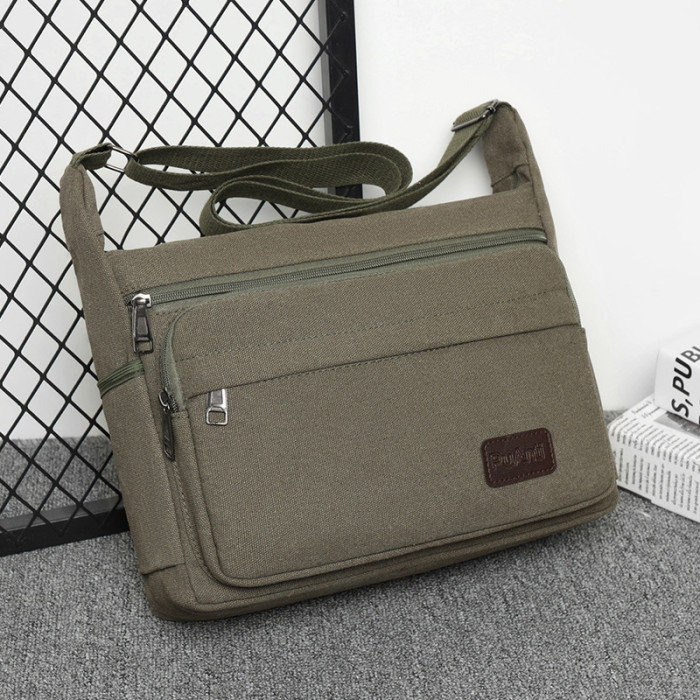 新款男包休閒帆布挎包男士橫款單肩包斜後背包包工地乾活包工具包