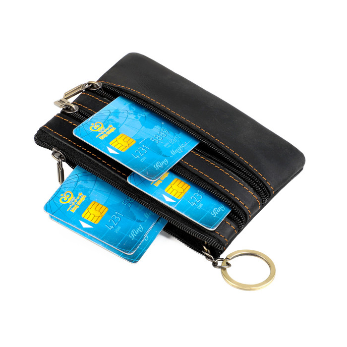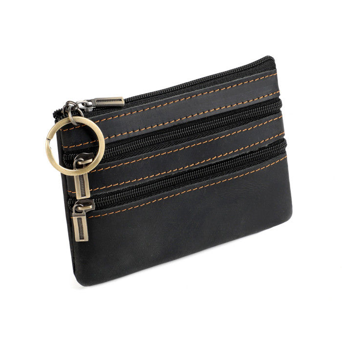歐美復古瘋馬皮零錢包頭層牛皮卡包男女士信用卡卡套車鑰匙包真皮