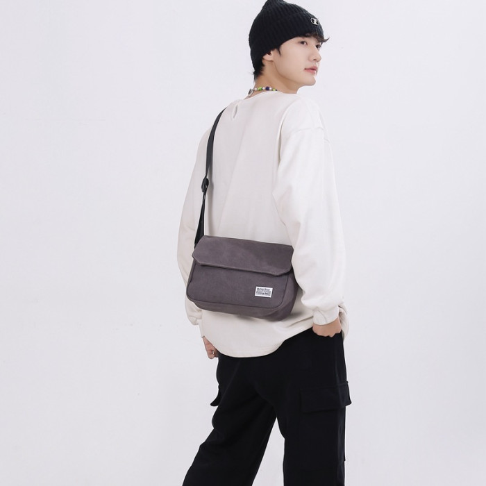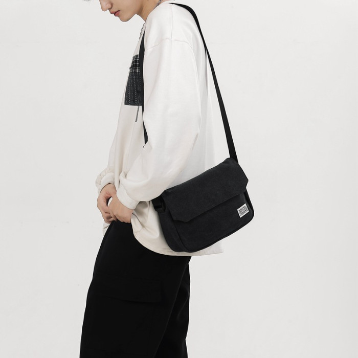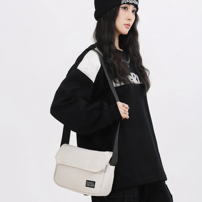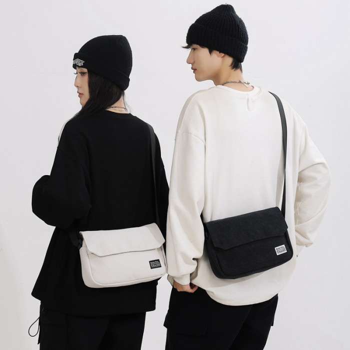 單肩包男女休閒情侶斜後背包包純色日系新款差包包男女