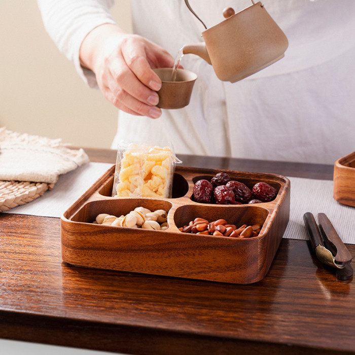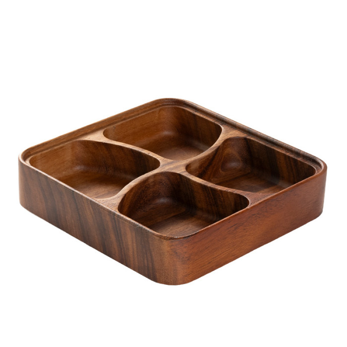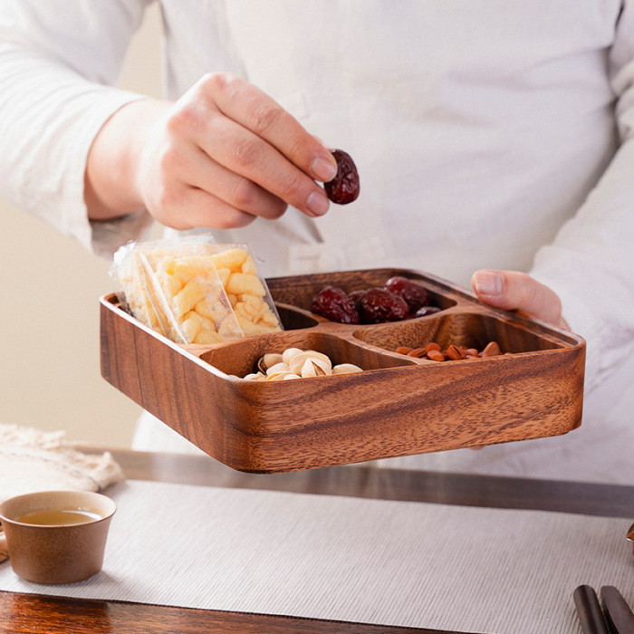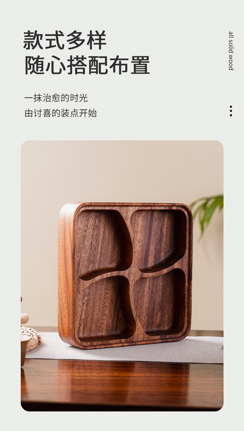 胡桃木果盤風車四格家用木質可堆曡整木分格相思木水果乾果零食盤