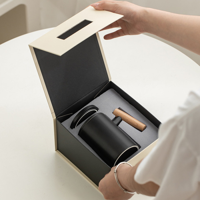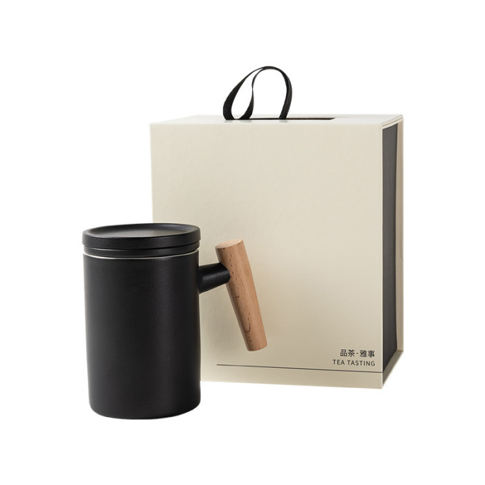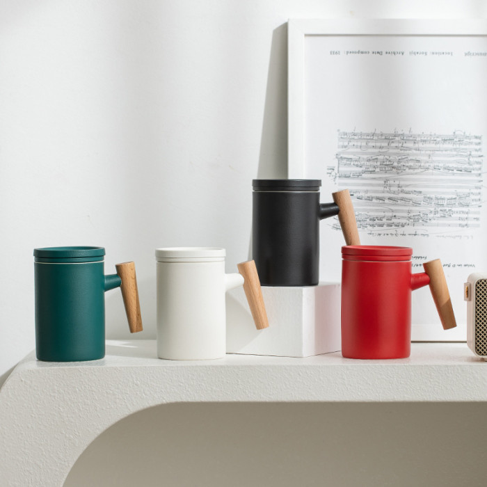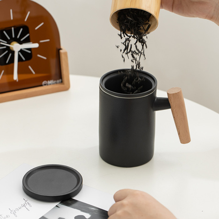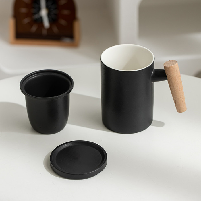 陶瓷馬克杯茶水分離木柄帶蓋過濾大容量泡茶杯個人專用