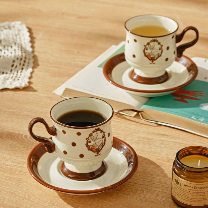 法式可愛兔子陶瓷咖啡杯高顔值馬克杯家用下午茶杯小衆杯碟套裝