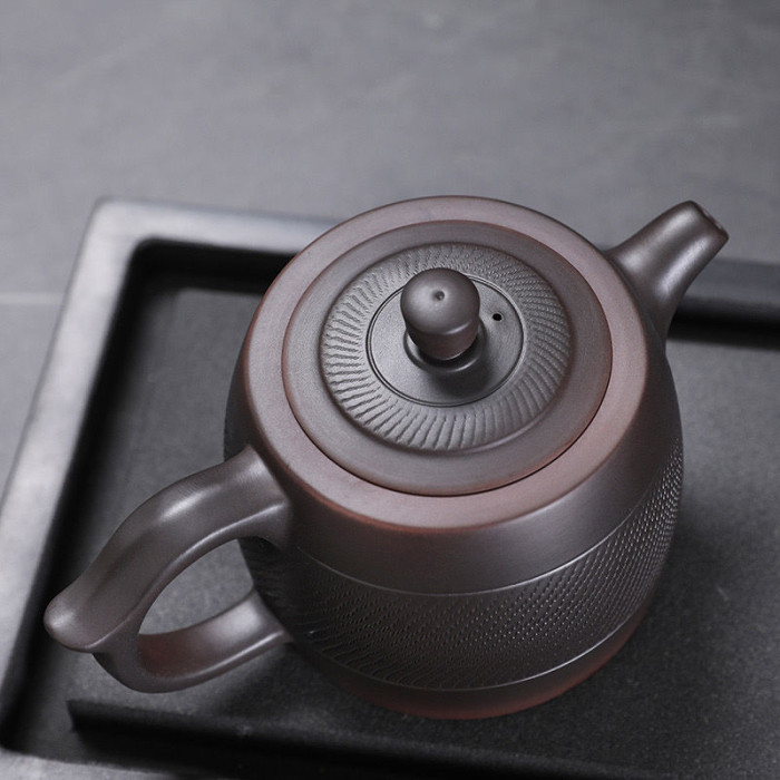 創意紫陶全手工跳刀紋鳳鳴井欄壺家用功夫茶具單復古壺大號泡茶壺