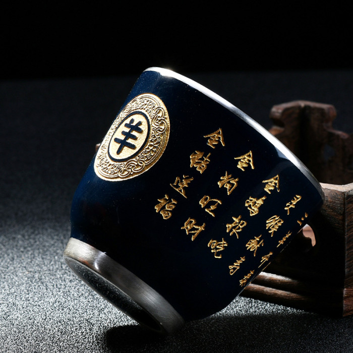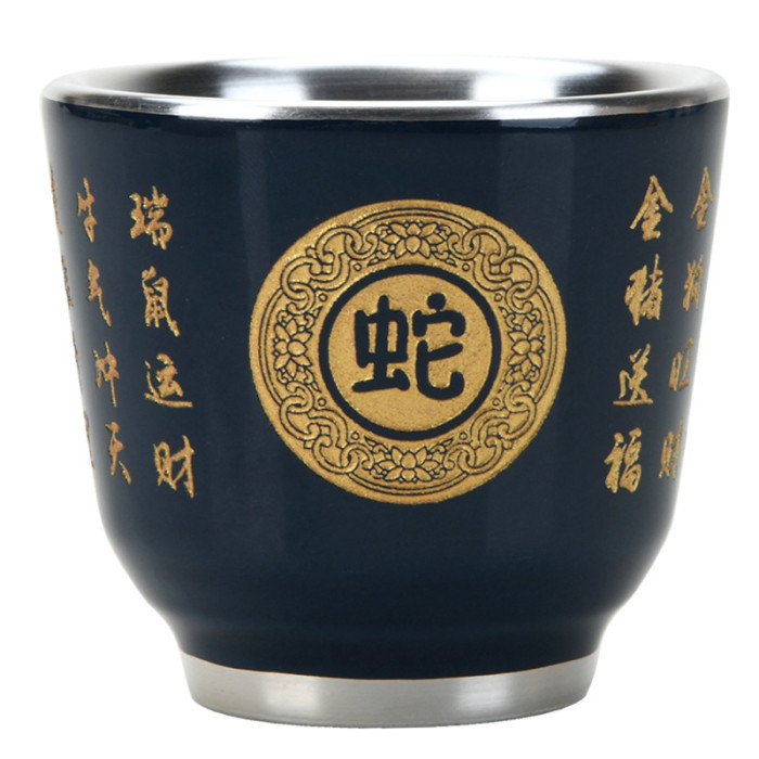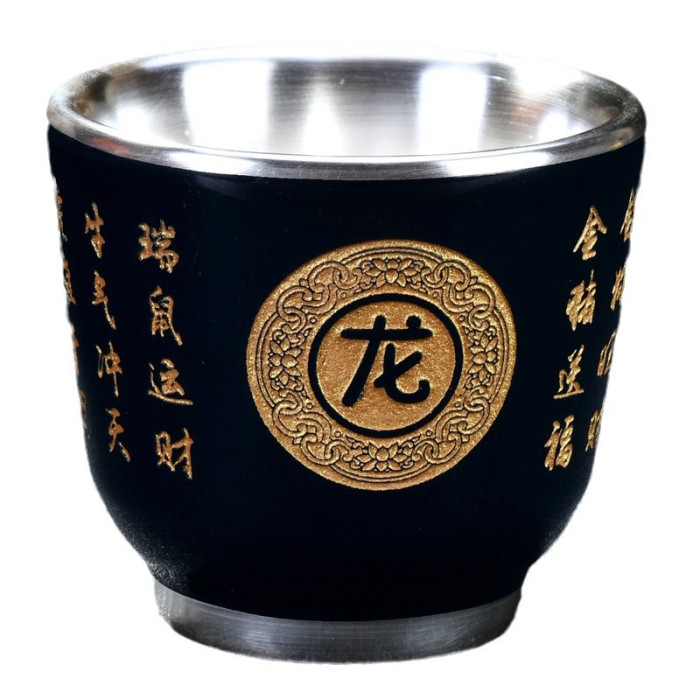 主人杯單杯子十二生肖純銀茶杯陶瓷品茗杯鑲銀茶盞功夫茶碗鎏銀杯
