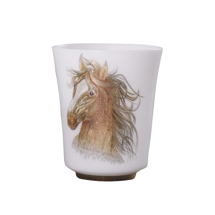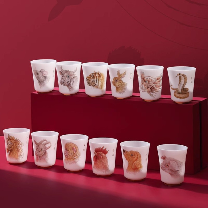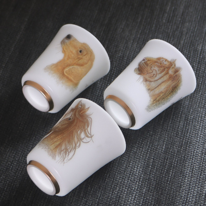 高級十二生肖陶瓷主人杯素燒白瓷冰種羊脂玉瓷小茶杯金絲圖案男女