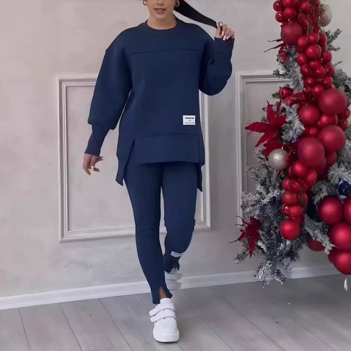 2024秋新款歐美女裝時尚休閒印花衛衣+長褲套