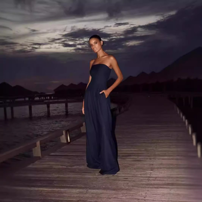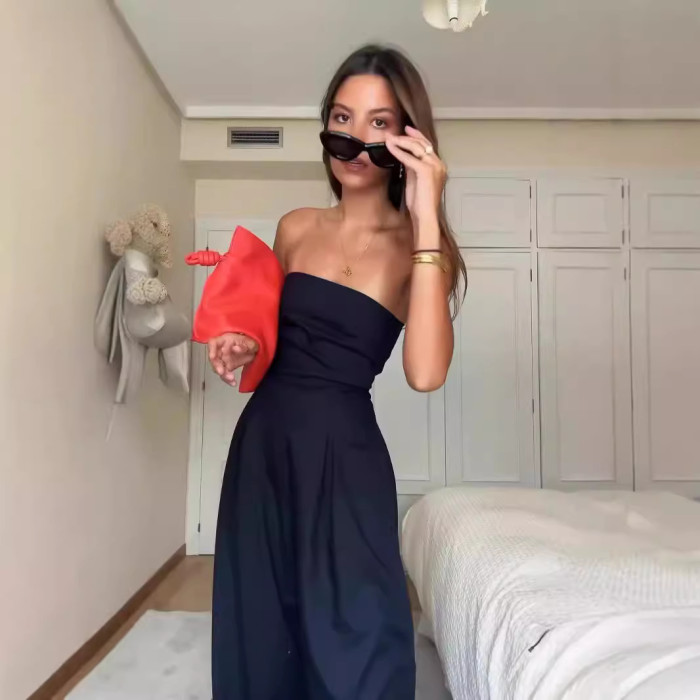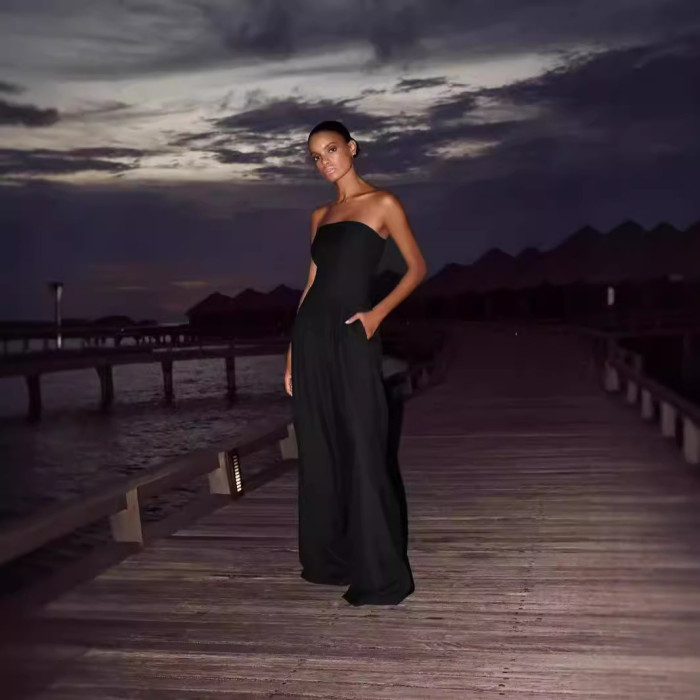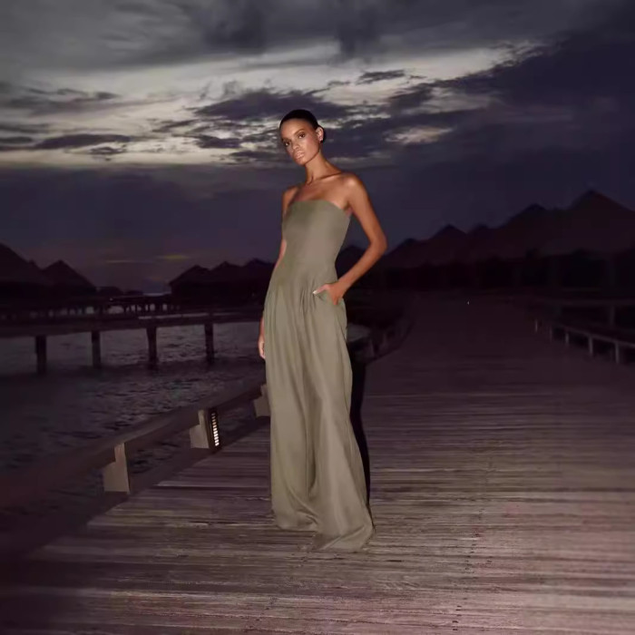 2024歐美 獨立站女裝 休閒露背修身打攬氣質連體褲