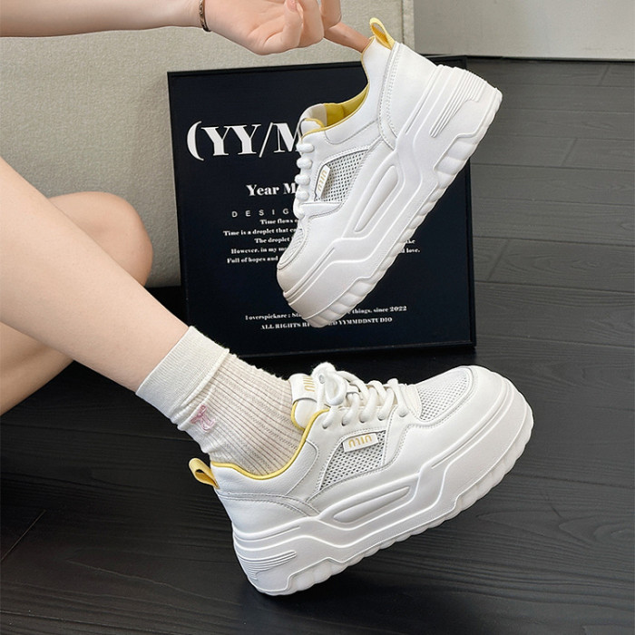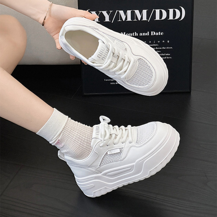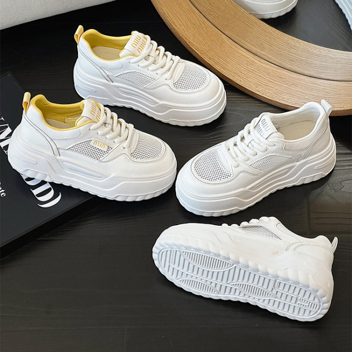 EVA超輕便厚底真皮小白鞋女網面2025夏新款女鞋百搭女鞋松糕板鞋