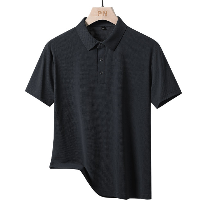 夏季新款POLO衫男士T恤大碼加肥寬松爸爸裝中老年男裝冰絲透氣爸