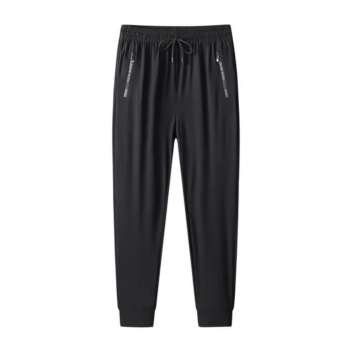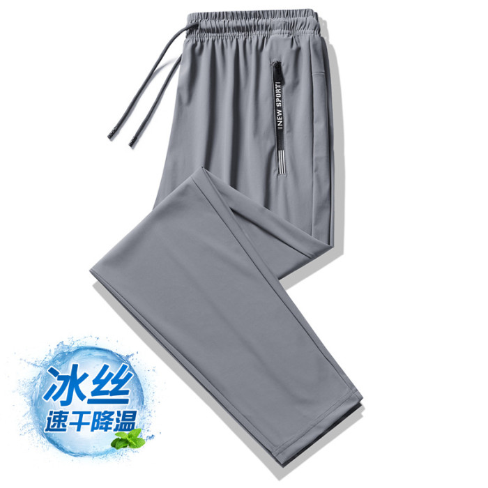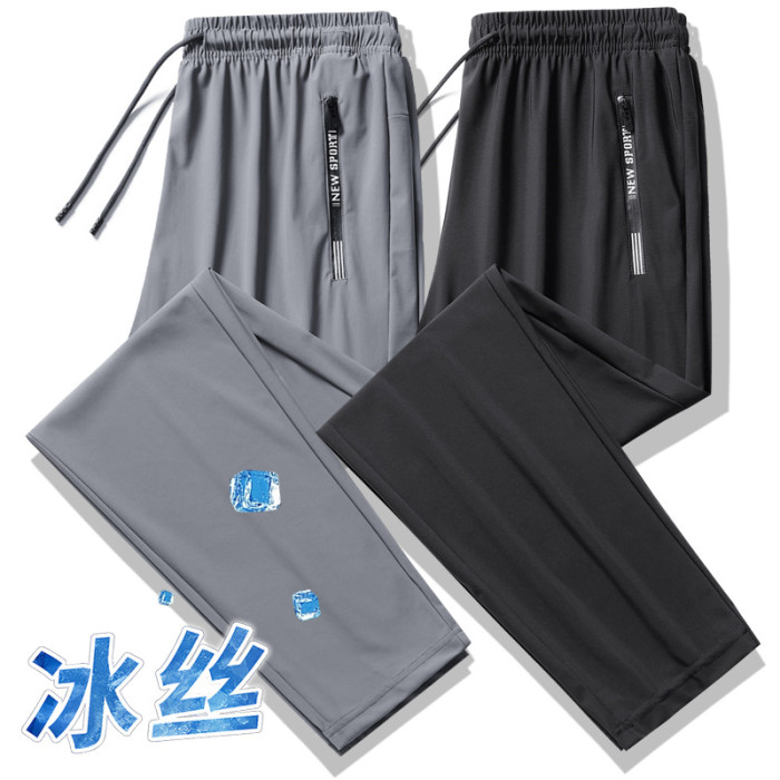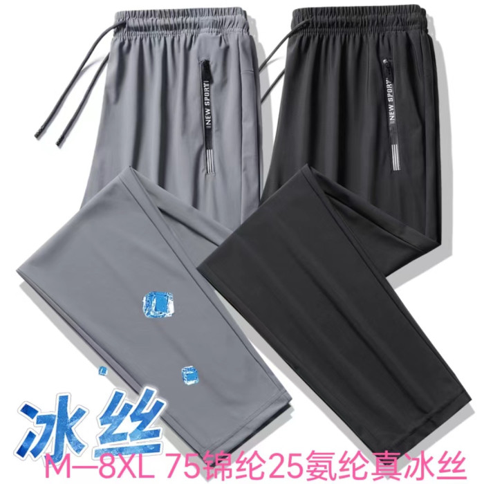 夏季薄款冰絲褲男款彈力直筒運動褲寬松加肥加大碼休閒長褲子時尚