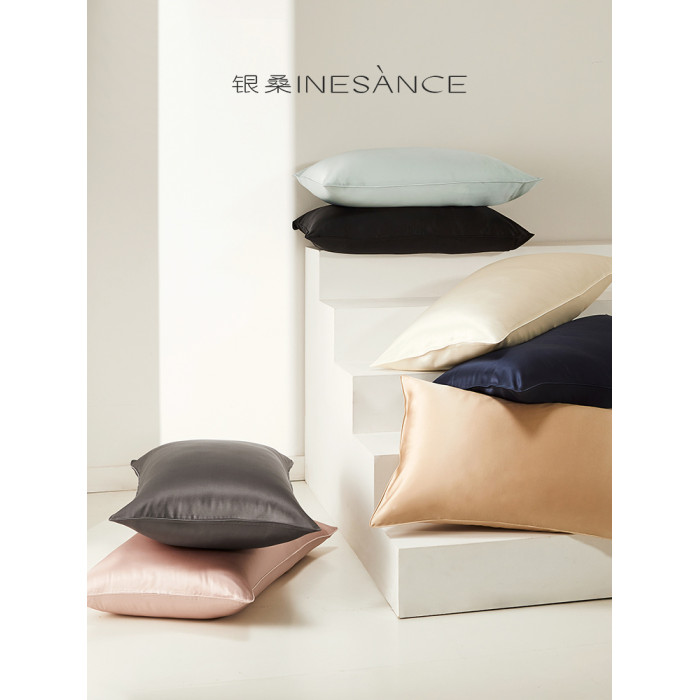 銀桑22姆米重磅真絲枕套雙面桑蠶絲綢枕巾單人枕頭套標準48*74cm