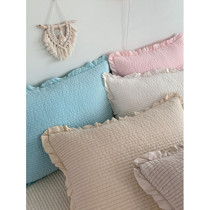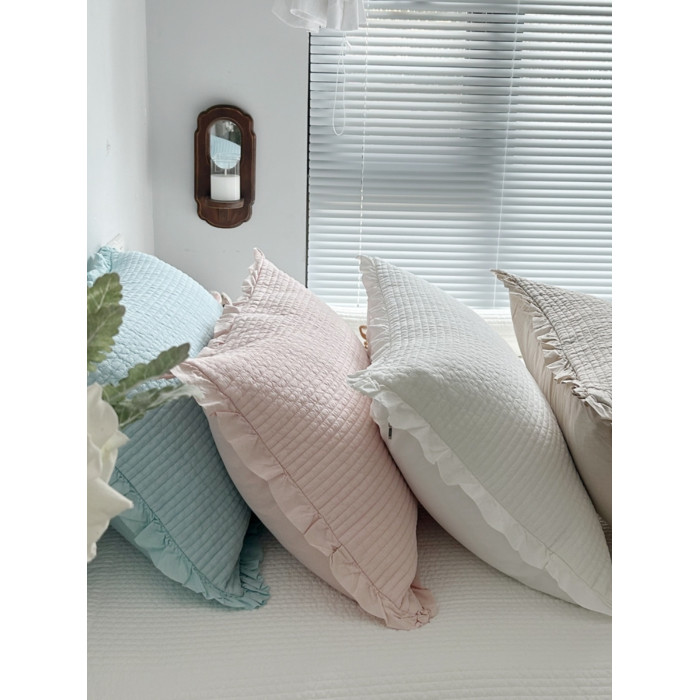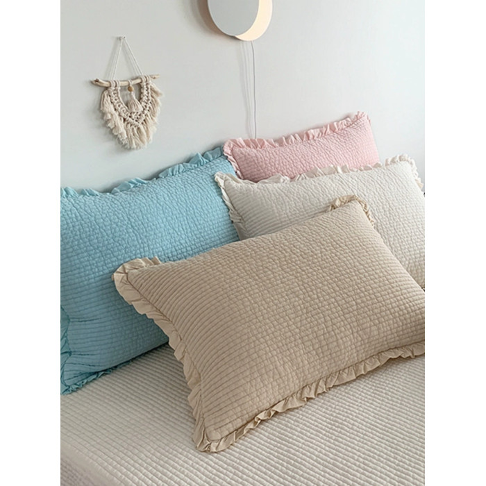 百搭自畱木耳褶邊水洗棉絎縫夾棉枕套韓國進口純棉60支水洗枕頭套