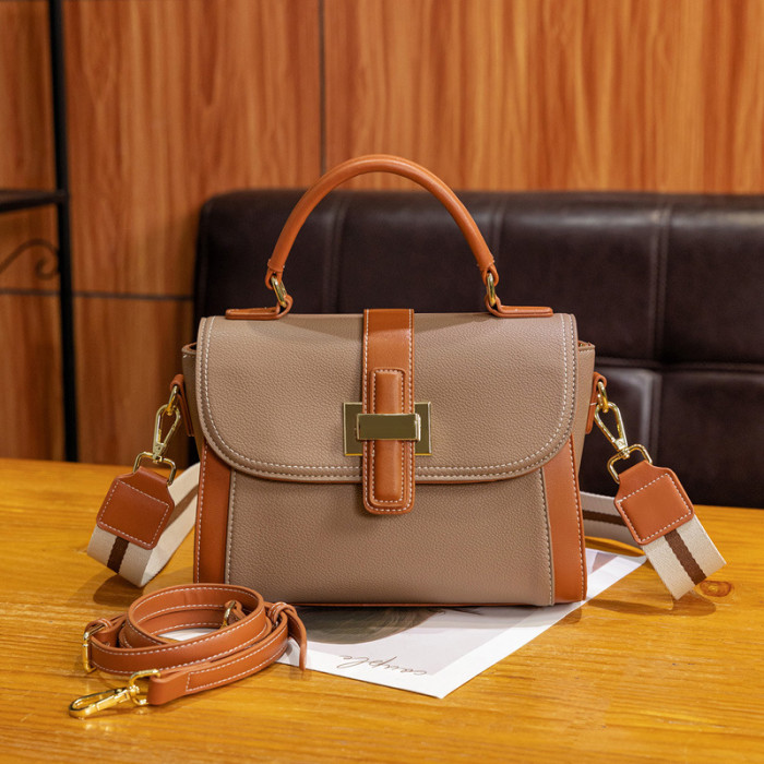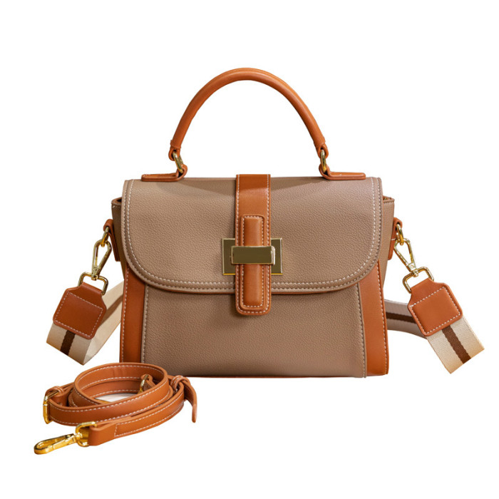 2024小衆輕奢女士單肩包超大容量高級質感撞色軟皮時尚手提斜後背包