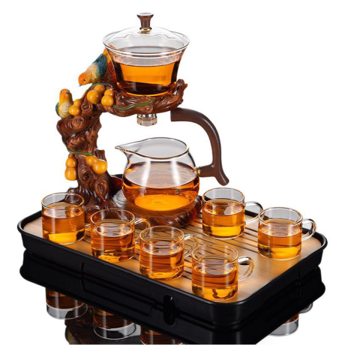 玻璃自動茶具福祿雙全6盃搭茶磐