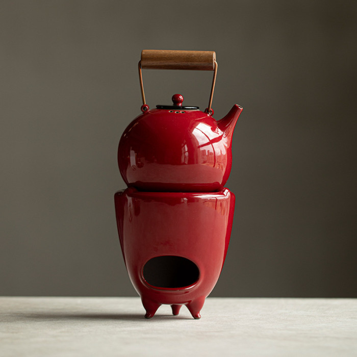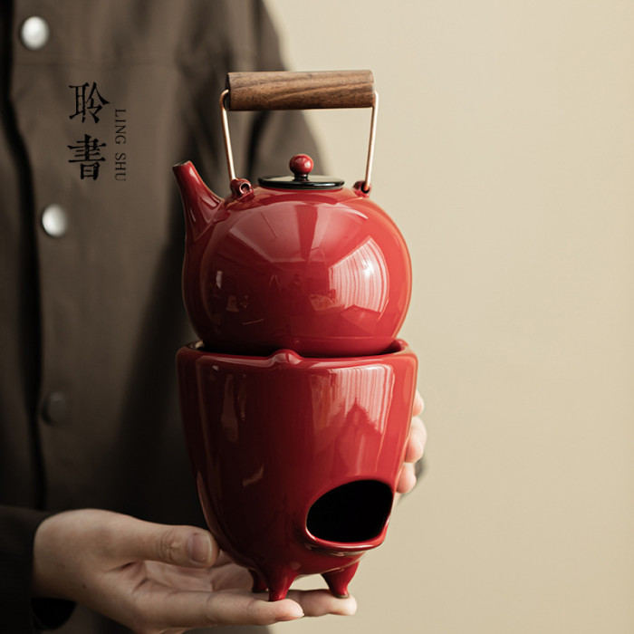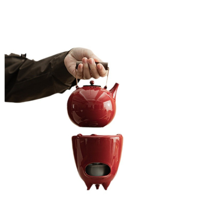 粗陶圍爐煮茶煮茶壺套裝復古大紅色家用室內陶瓷烤茶爐烘茶煮茶爐
