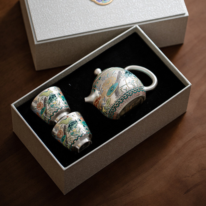 一壺二杯鎏銀茶具套裝家用客廳輕奢高檔茶壺茶杯辦公室會客茶具