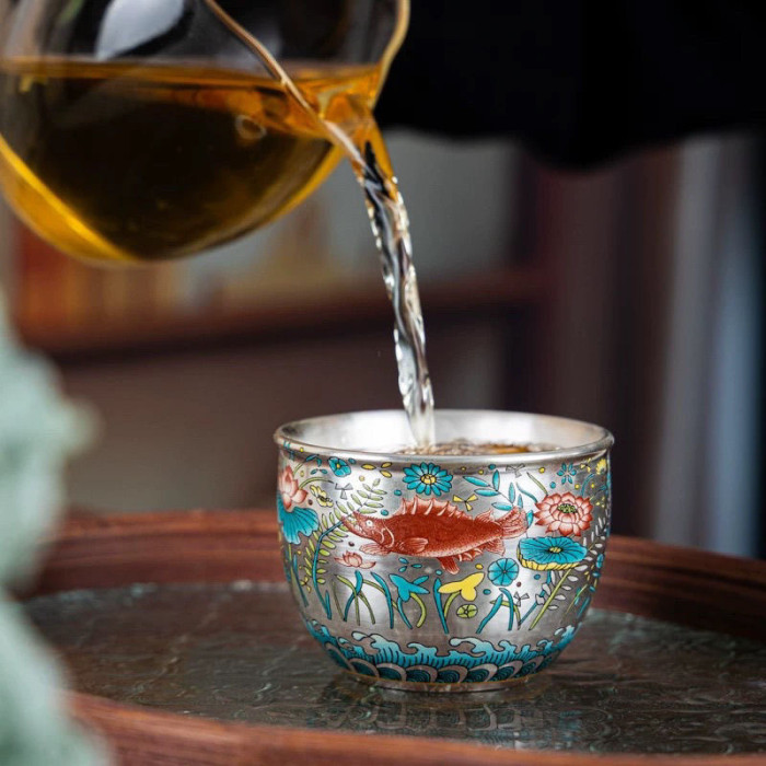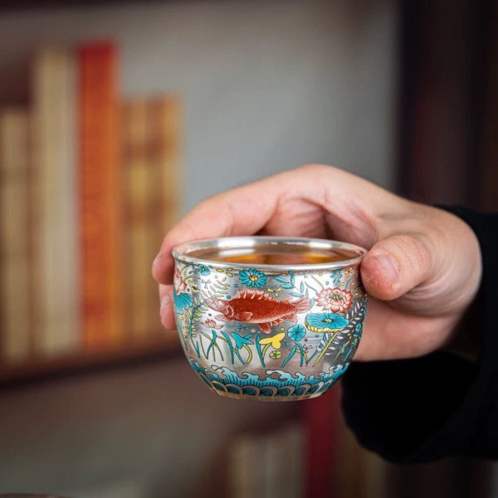 陶瓷鎏銀主人茶杯品茗單杯陶瓷主人杯家用銀杯高檔單人功夫茶具