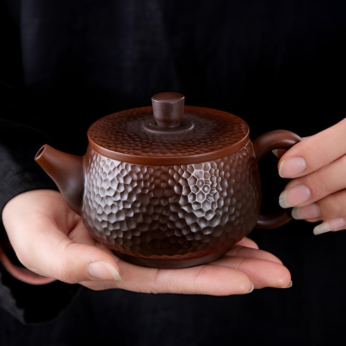 紫陶鎚紋漢瓦壺大容量手工復古家用泡茶壺大寬口鳳鳴紫砂壺禮盒裝