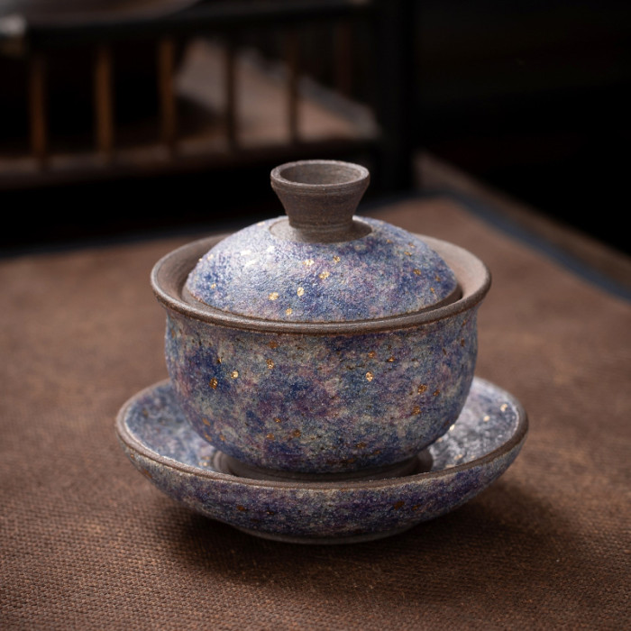 柴燒巖礦三才蓋碗巖礦茶杯景德鎮蓋杯創意功夫茶具主泡茶碗泡茶器