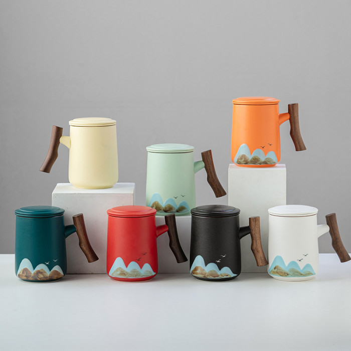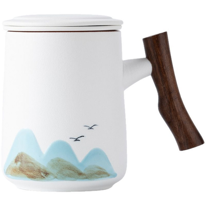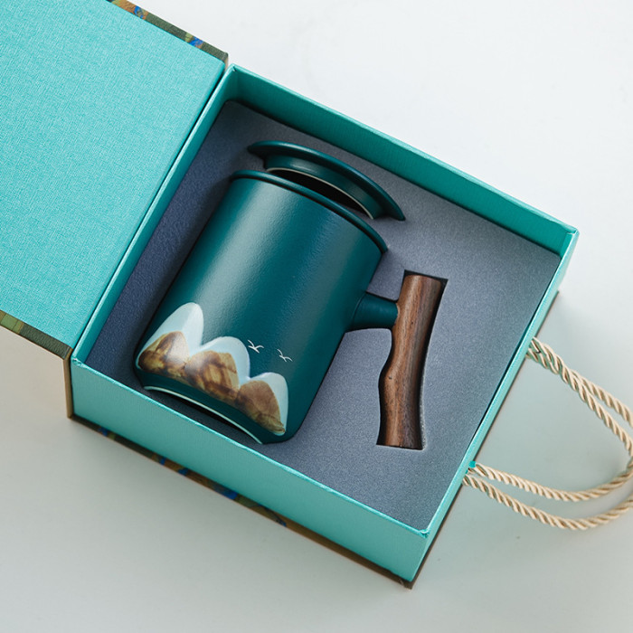 國潮千里江山馬克杯茶水分離帶蓋辦公杯文創商務禮品陶瓷杯