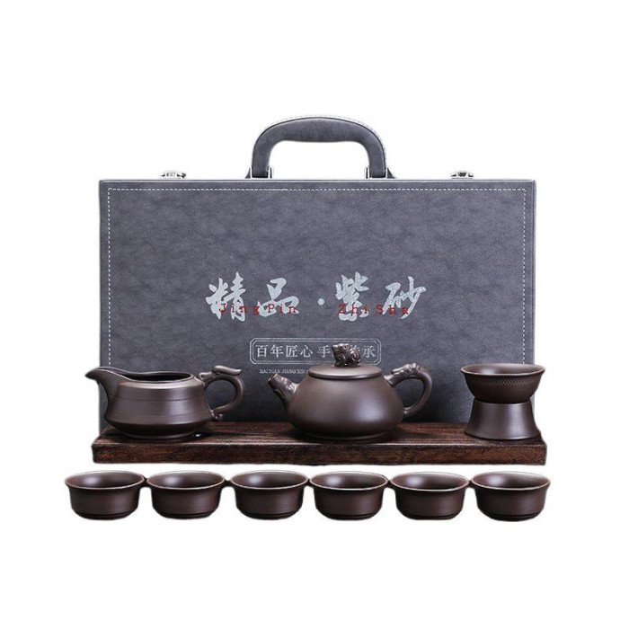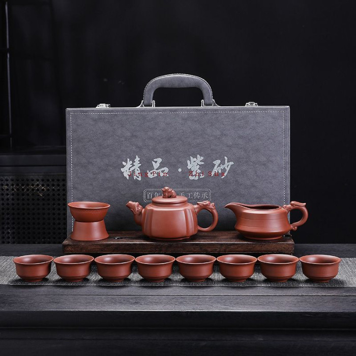 高檔紫砂茶具套裝硃泥茶具功夫泡茶壺家用會客喝茶茶杯蓋碗泡茶器