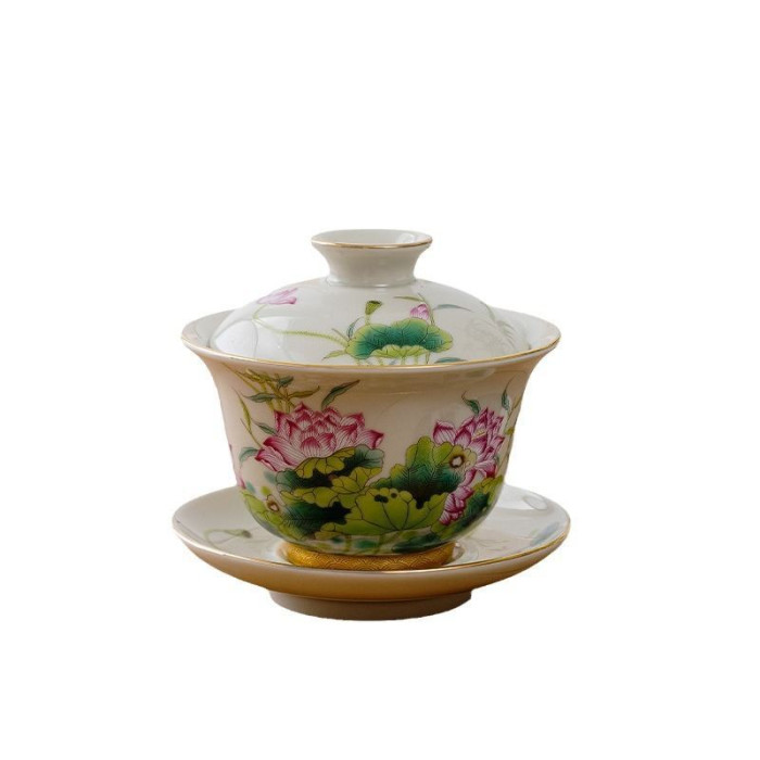 單個三才泡茶蓋碗茶杯大號陶瓷茶碗青白瓷功夫茶具青花瓷瓷理陶裡