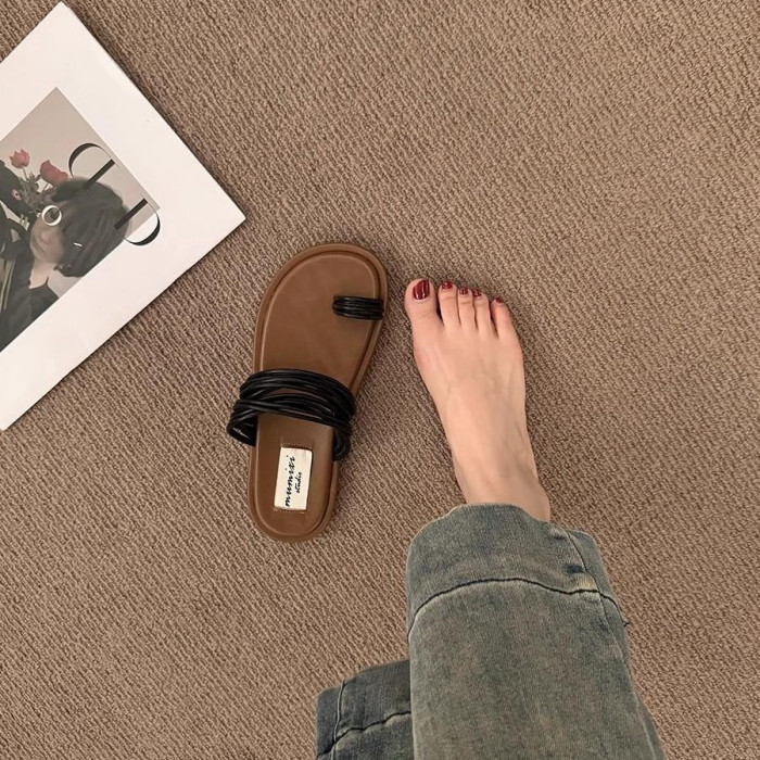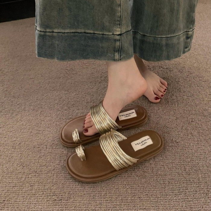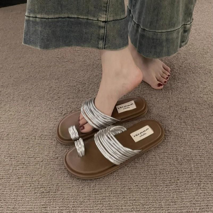 法式平底小涼拖套趾拖鞋女鞋子2025新款夏季外穿復古海邊沙灘涼鞋