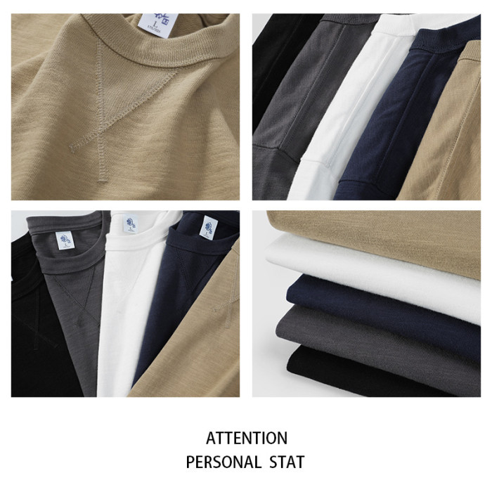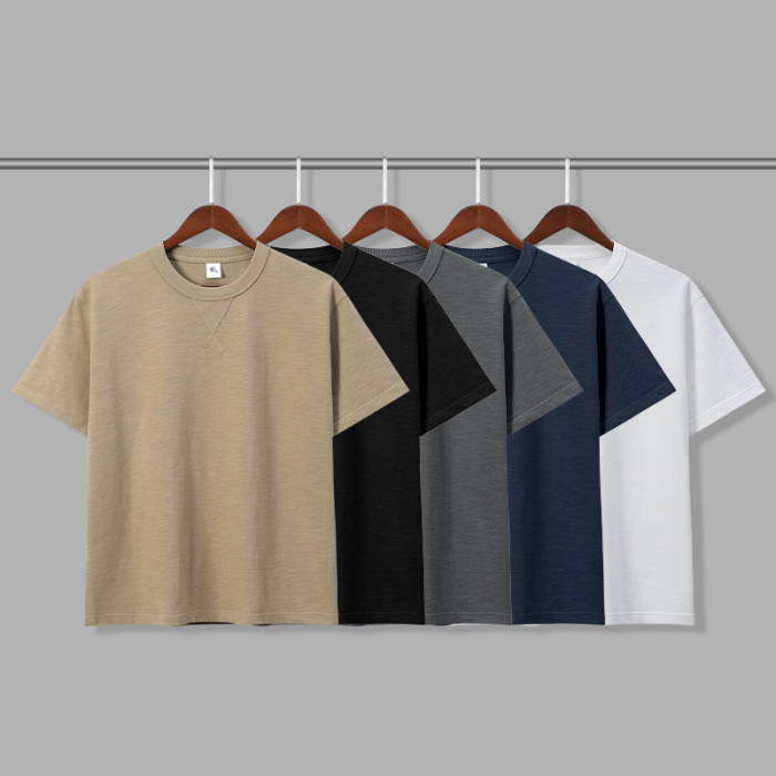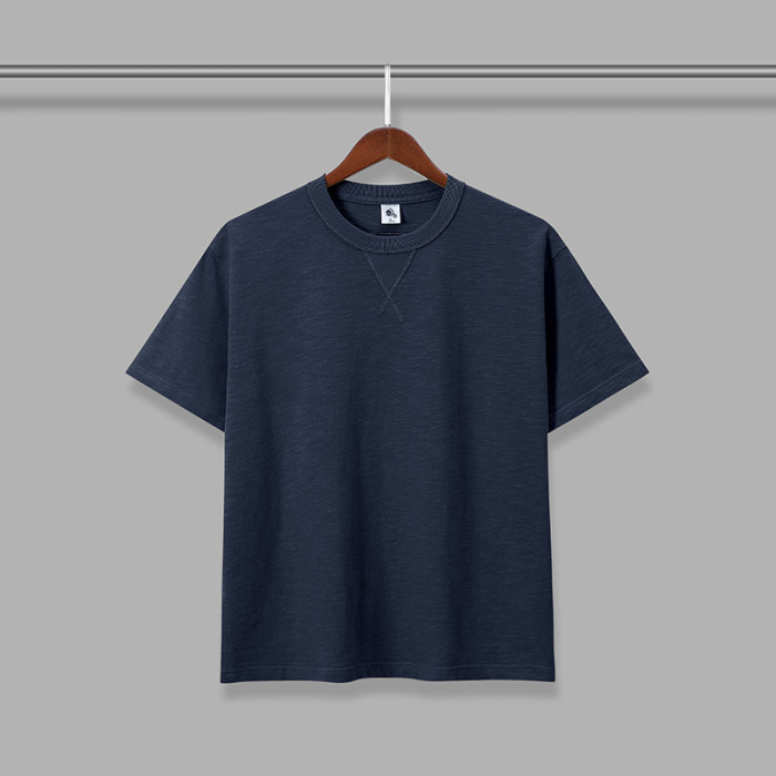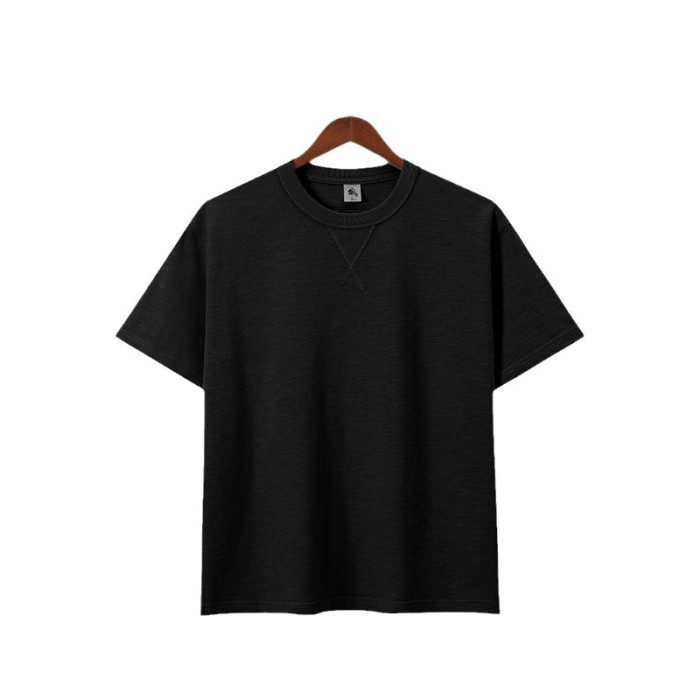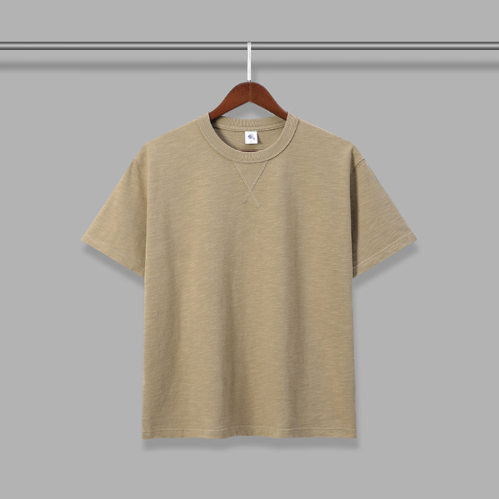 日系復古水洗重磅阿美哢嘰300克純棉重磅純色寬松竹節棉男女短袖t