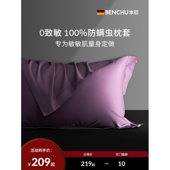 本初防蟎枕套單個酒店枕頭芯套140支高級純色全棉純棉除蟎枕頭套