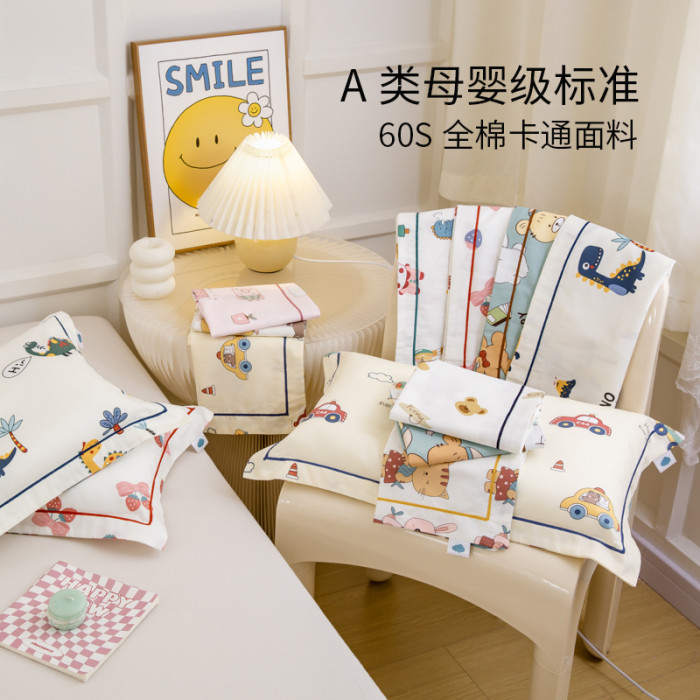 60支A類純棉兒童枕套 嬰兒卡通全棉枕頭套可愛單個