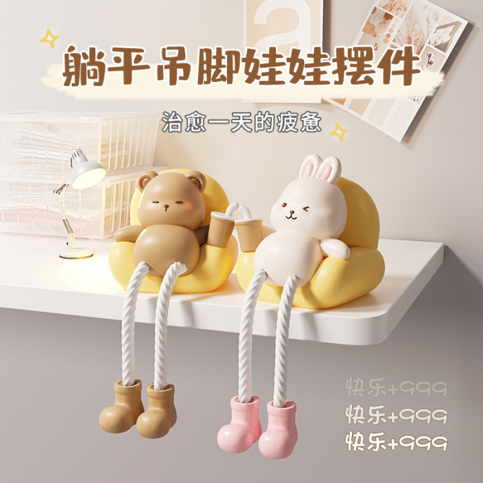 創意可愛躺平吊腳娃娃樹脂工藝品辦公室書櫃書架裝飾女桌面小擺件