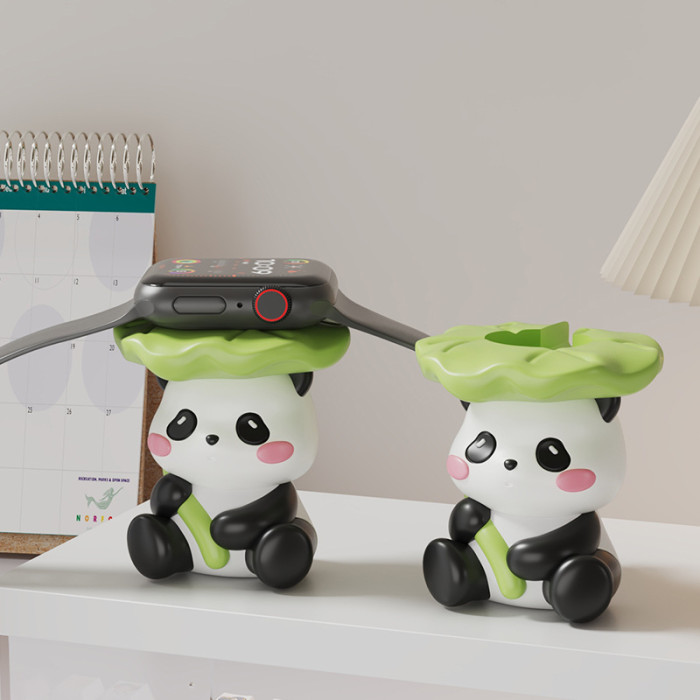 荷氣生財彿系熊貓可愛創意書桌工位床頭桌面收納擺件手錶充電支架