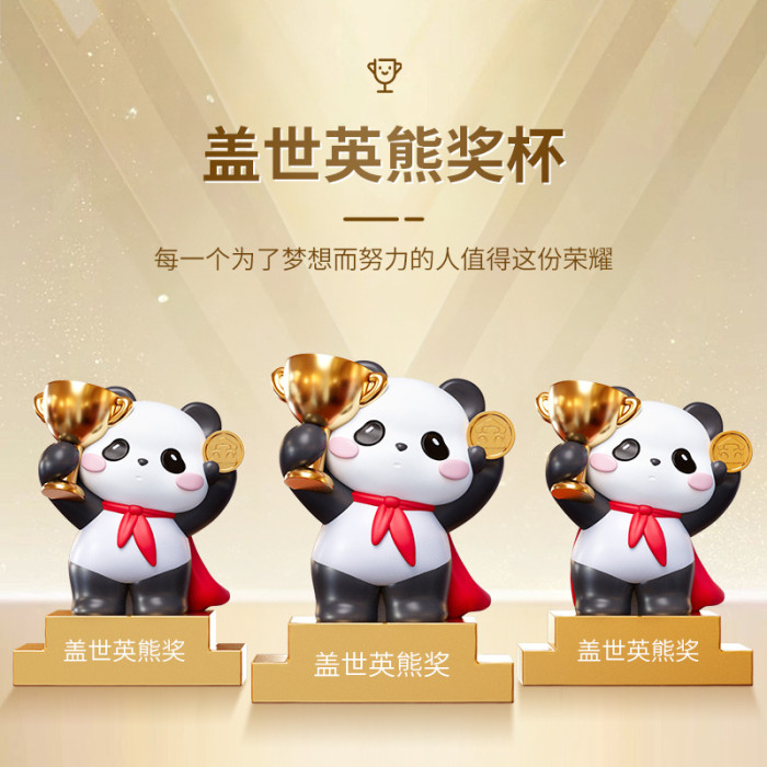 可愛創意熊貓獎杯學生年會比賽頒獎禮物可刻字桌面擺件教師節開學