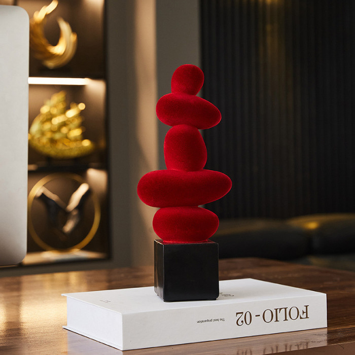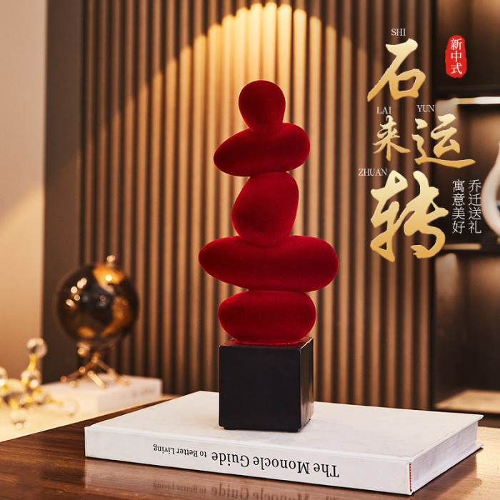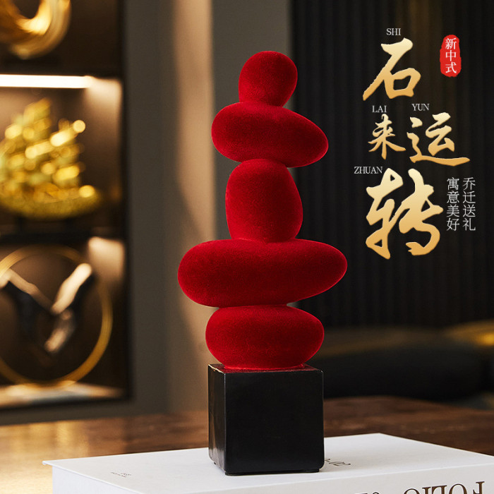 植絨石來運轉新中式輕奢客廳酒櫃家居飾品開業禮物辦公室裝飾擺件