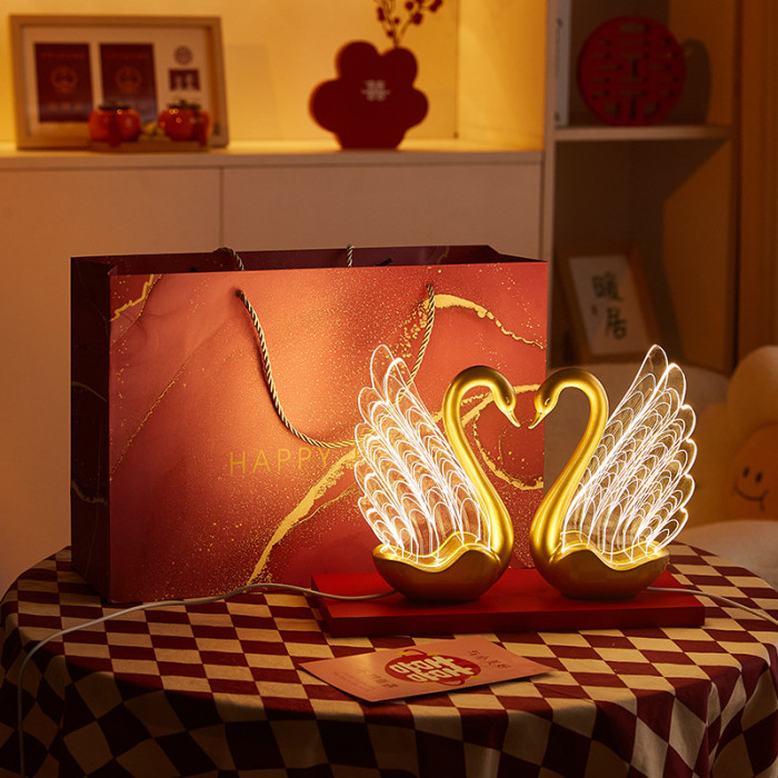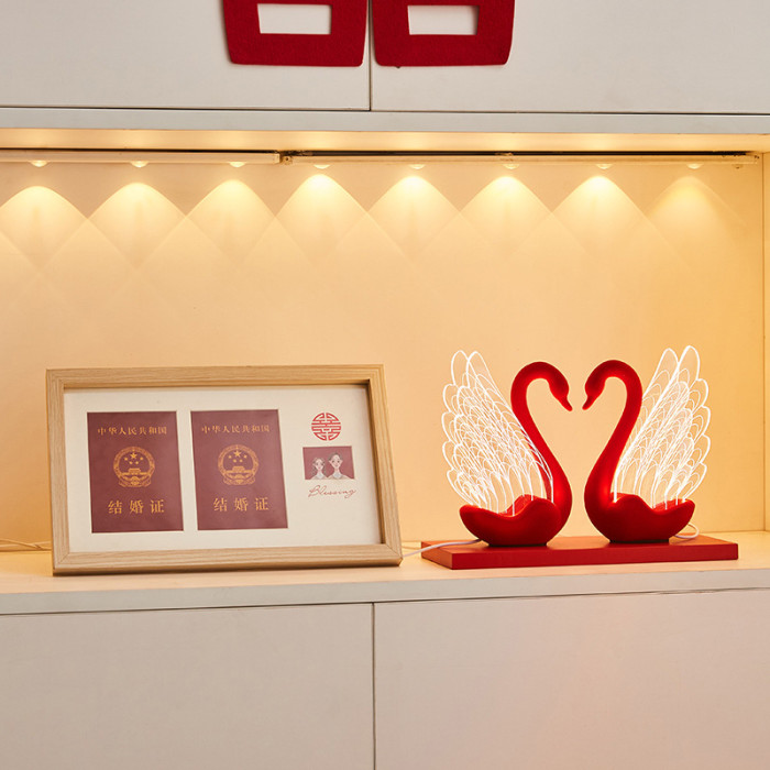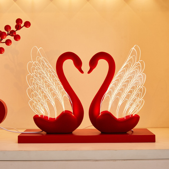 喜慶亞克力天鵞台燈桌面小擺件玄關臥室婚房裝飾情侶結婚訂婚禮品