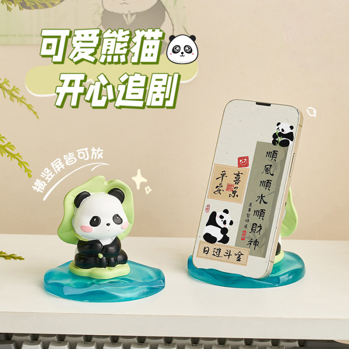 彿系熊貓手機支架情緒穩定桌面小擺件辦公室工位裝飾活動禮品