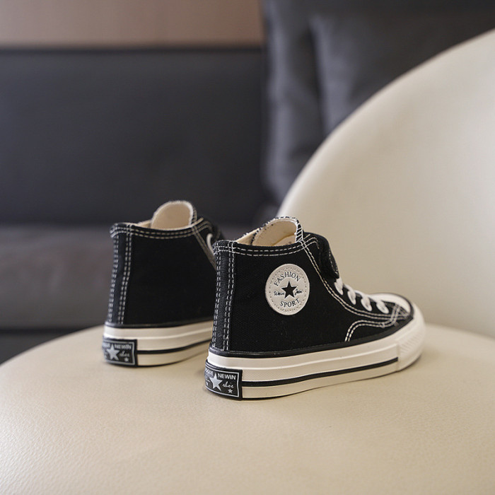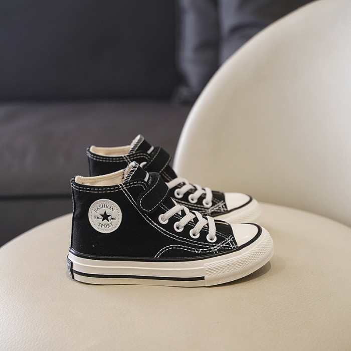 兒童高幫帆布鞋女童鞋子2025春秋新款潮透氣男童小白鞋小孩子布鞋