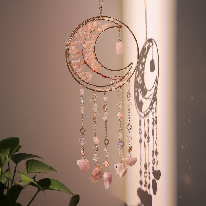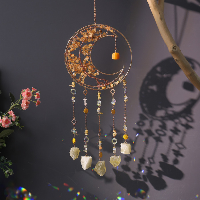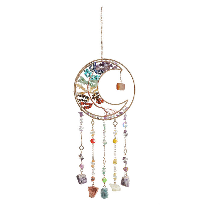 陽光捕手簡約七彩碎石生命樹窗台裝飾風鈴工藝品月亮吊墜水晶掛件