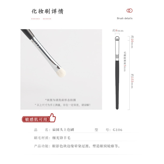 琴製化妝刷G系列G106眼影刷一支中號細光鋒羊毛柔軟純手工眼部刷