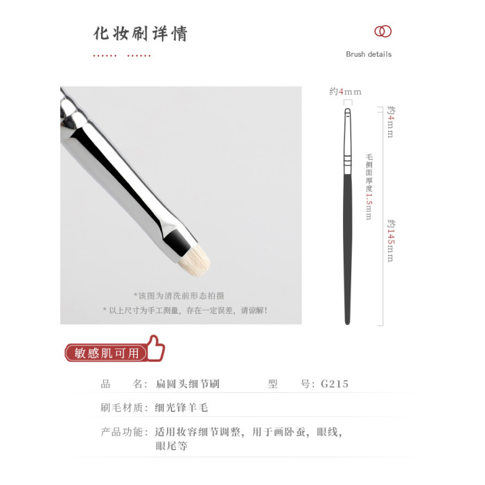 琴製化妝刷G系列G215扁圓形細節刷一支超柔軟眼部精細上色化妝刷