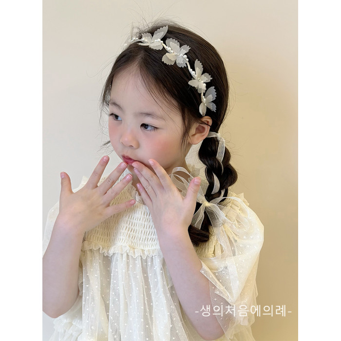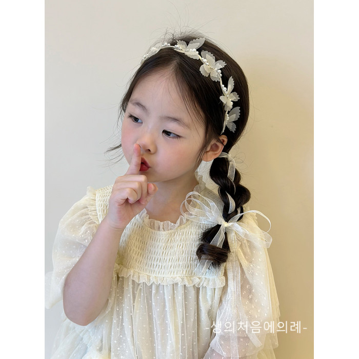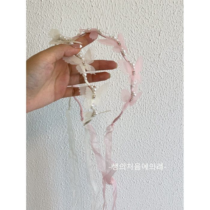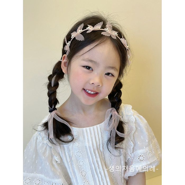 蝴蝶仙子 氣珍珠飄帶髮箍兒童頭箍女童頭飾女孩壓髮不勒頭髮飾