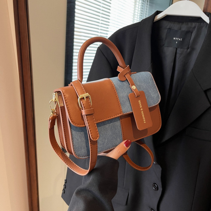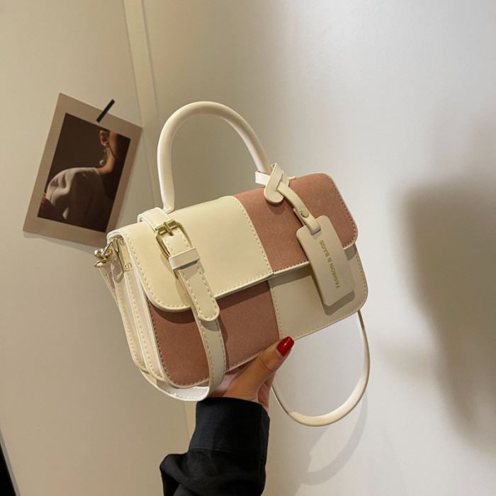 時尚簡約單肩包2023夏季新款撞色小方包手提包包女休閒通勤斜後背包