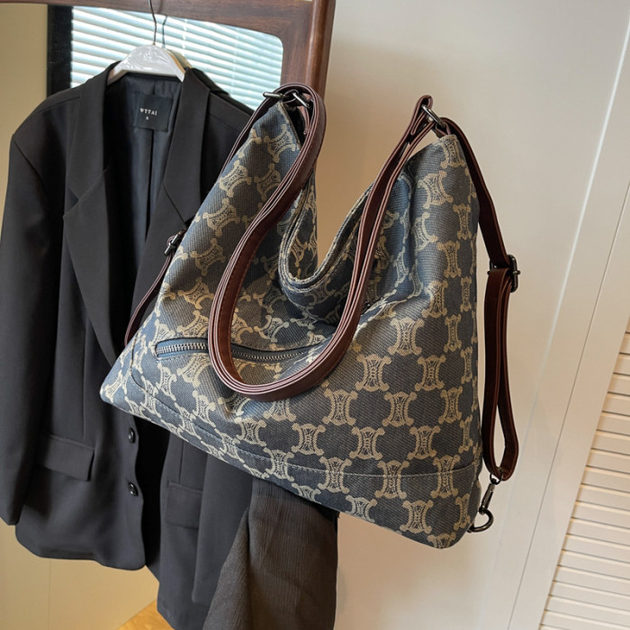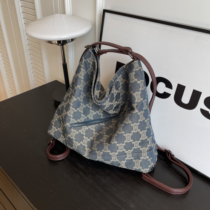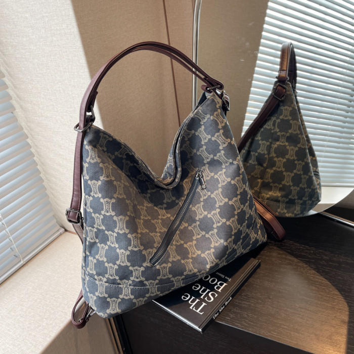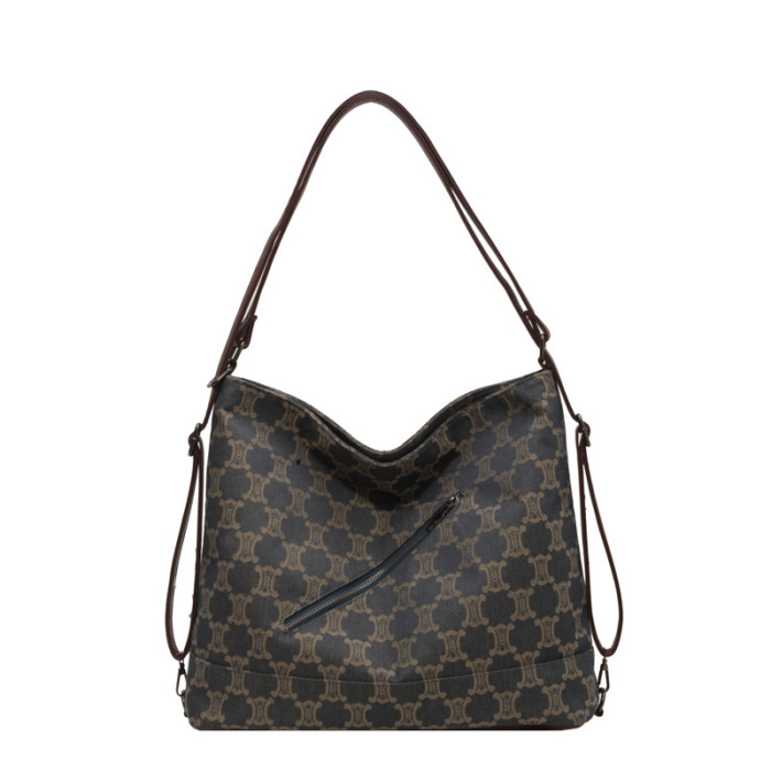秋冬大容量包包女2023新款潮休閒洋氣印花單肩水桶包多用雙肩後背包