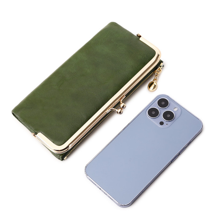 復古多功能折曡夾子長款零錢包2024新款可攜式百搭多卡位女士手機包
